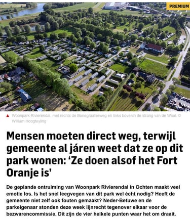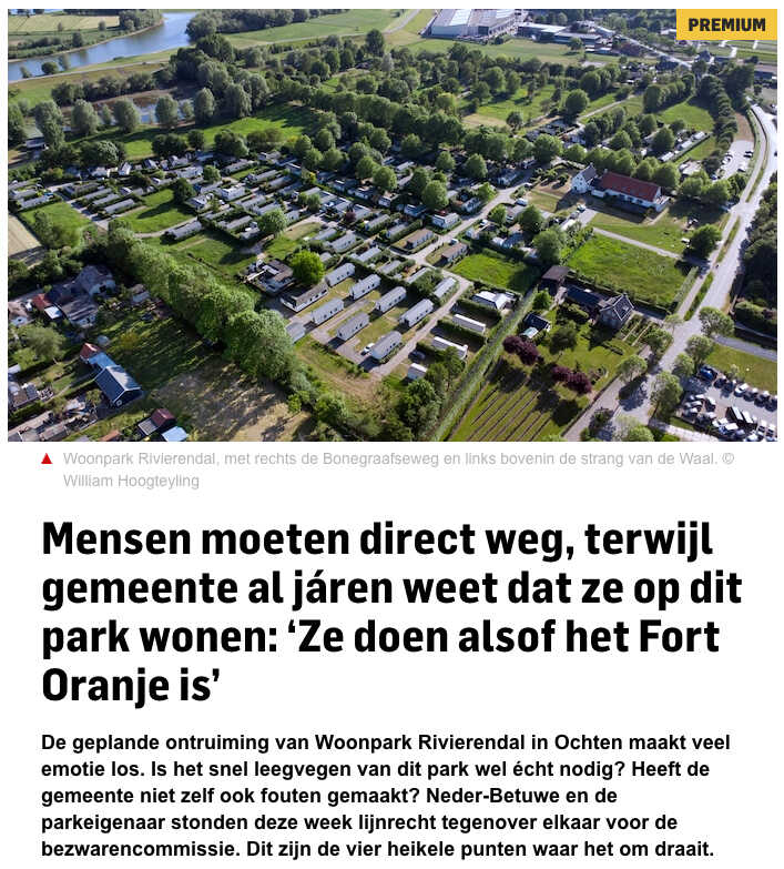 Op 21-05-2025 kwam onderstaand artikel in De Gelderlander over een ander woonpark wat veel problemen kent. Frappant was de reactie van Jan van Baal.
