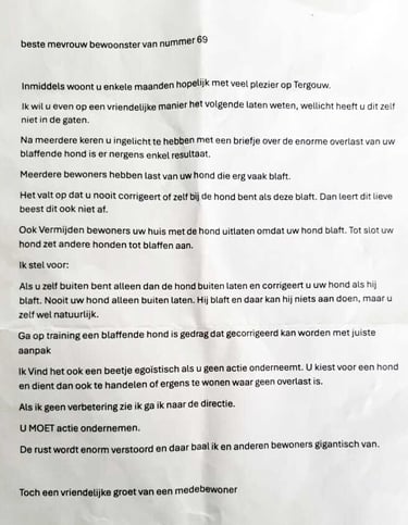 Op verzoek wordt dit bericht geplaatst. Er zijn 4 anonieme brieven bezorgt op 69. Dit bleek voor 68 te zijn. De bewoner laat weten erg te schrikken van anonieme brieven en wil graag in dialoog via Meester S.H. Stax, Mobius Advocaten, Jan van Goyenkade 10-3, 1075HP Amsterdam, stax@mobiusadvocaten.nl, 0620217614.