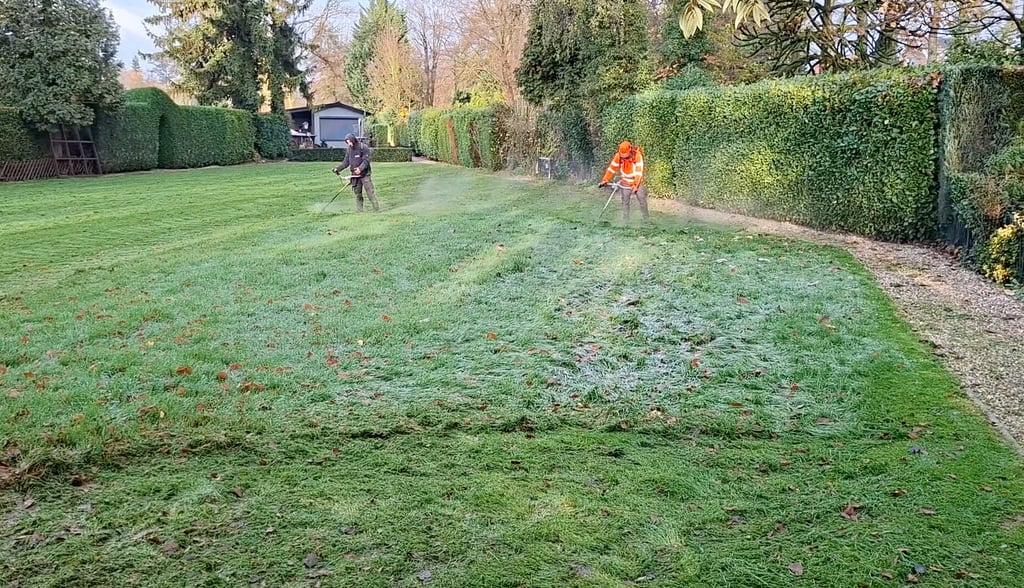 Volgens de parkregels mag er geen herrie gemaakt worden met tuinapparatuur voor 10 uur ‘s ochtends. De medewerkers van Tergouw begonnen vandaag voor 9 uur ‘s ochtends een enorme herrie te maken. Waar is de zitmaaier (een grasmaai-autootje) eigenlijk gebleven? Waarom met een handmaaier op deze onhandige, tijdrovende manier maaien met geluidsoverlast tot gevolg? Betalen we hier nou parklasten voor?